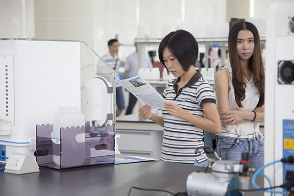 參會客戶正在看華粵代理的厭氧工作站