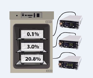 Biospherix低氧培養(yǎng)裝置,可精確控制監(jiān)控細胞培養(yǎng)小托盤室(C-Chamber)的氣體濃度。與三氣培養(yǎng)箱相比,是一個開創(chuàng)性設計。空間小,氣體控制更精確,節(jié)省氣體,可實現做到低于0.1-3%的極端低氧,開關門恢復快。